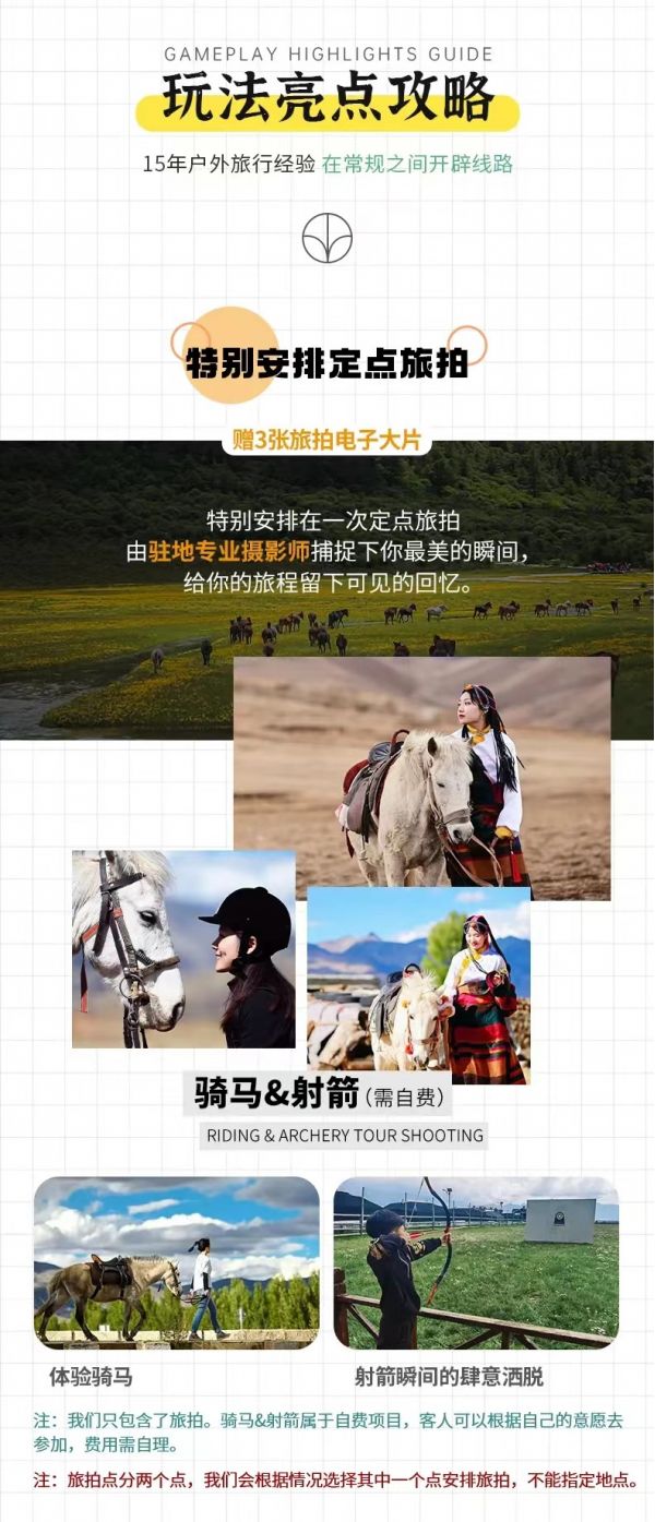 (2) 洛絨牛場往返騎馬費用500元/人,價格隨季節(jié)浮動,以景區(qū)定價為準(可選擇);