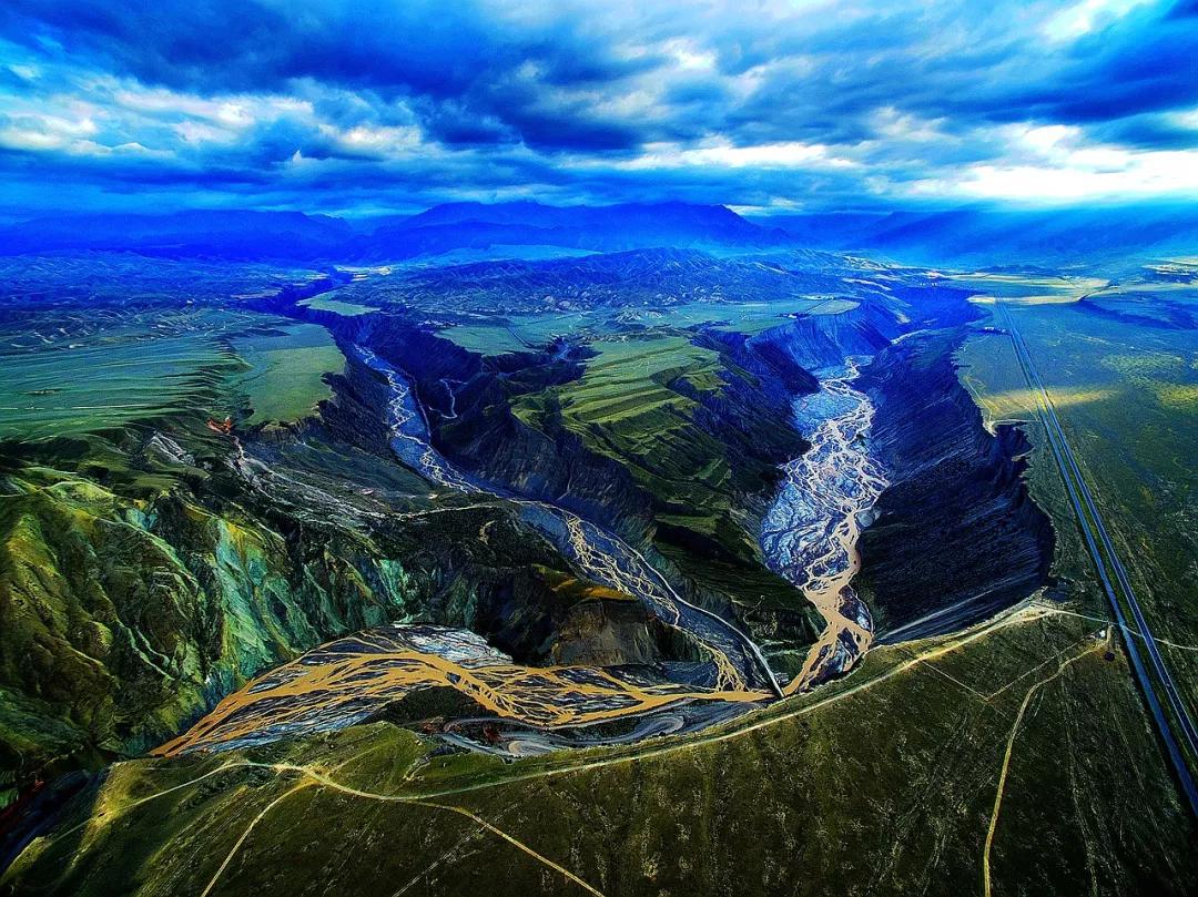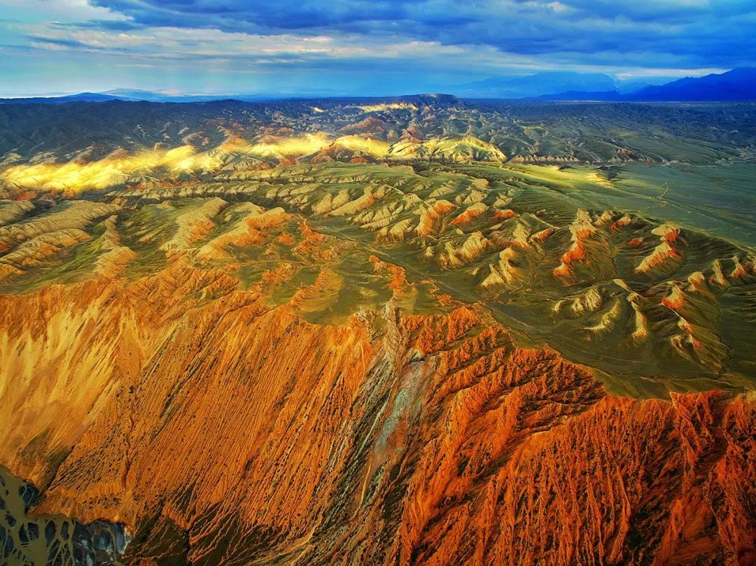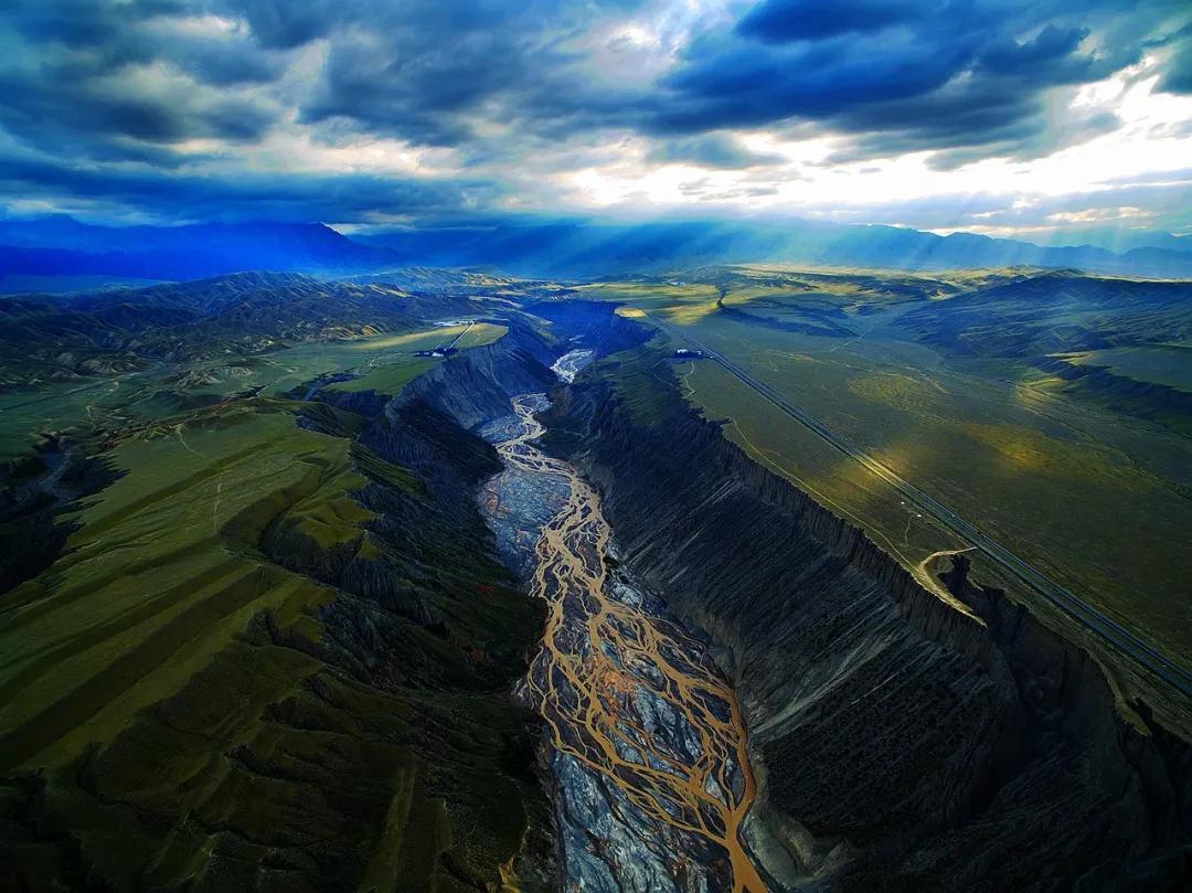 從高空看,安集海峽谷的色彩異常豐富,河流切割大地,將不同顏色的巖層沖刷溶解,形成了一幅絢麗多彩的大地抽象畫景觀。與其他一些色彩灰冷單調的峽谷相比,擁有紅山、黛崖、青峰、綠島、碧水等豐富色彩的安集海峽谷,就像一條彩帶飛舞在天山北坡腳下,成為中國峽谷群中一條色彩最豐富的大峽谷。