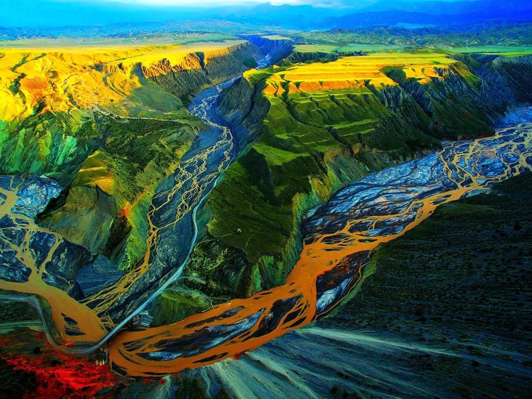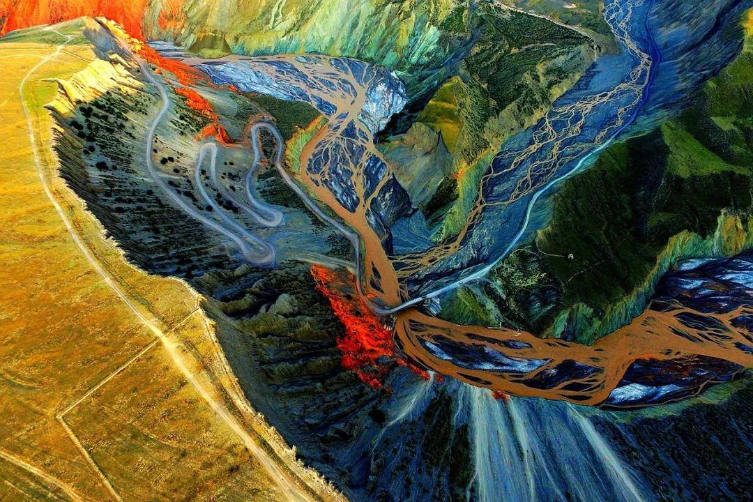 鮮為人知的安集海峽谷,其實有著令人目眩、剛柔并濟的壯美景觀:峽谷兩側是從上到下依次排開的河流階地,宛如波濤洶涌的海浪一樣撲面而來,充分顯示了峽谷陽剛的一面。而河谷里蜿蜒流淌的辮狀河流,千轉百回,在纏綿低語中將峽谷柔情的一面展露無遺。這條峽谷還以豐富的色彩而令人感到嘆為觀止。