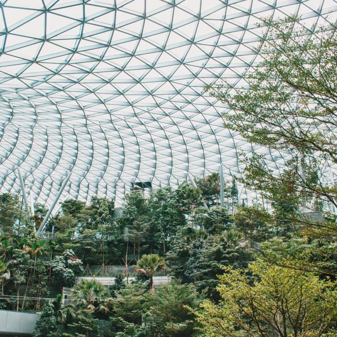 配合著巨大的玻璃穹頂和沁人心脾的綠植
