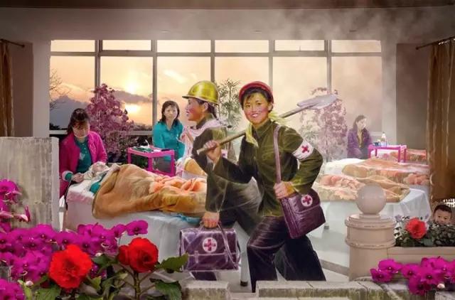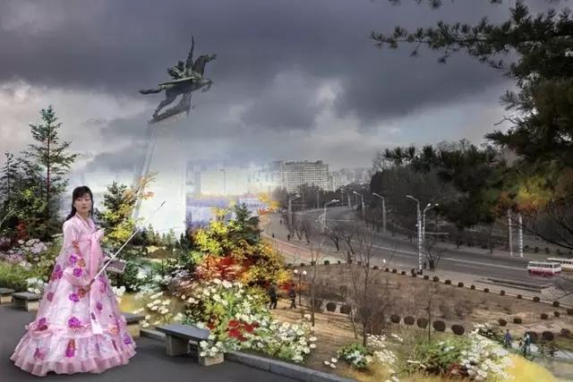 簡而言之,她把自己拍攝的現實影像與宣傳畫中的朝鮮拼貼在一起,帶來了觀看這個神秘國度的全新視角。在這些作品中,戲劇化的沖突與超現實的景象被巧妙重組,令人錯亂的同時也讓人驚醒:發生在朝鮮的一切不正是如此嗎?