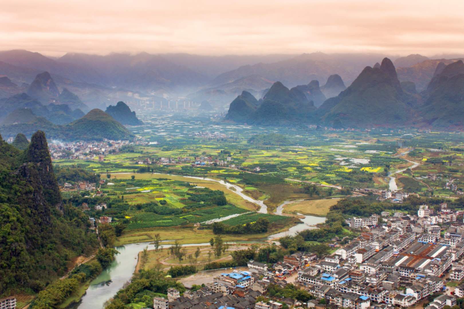 興坪鎮(zhèn)位于陽(yáng)朔東北部,距縣城25公里,漓江在此繞了一個(gè)大彎。
