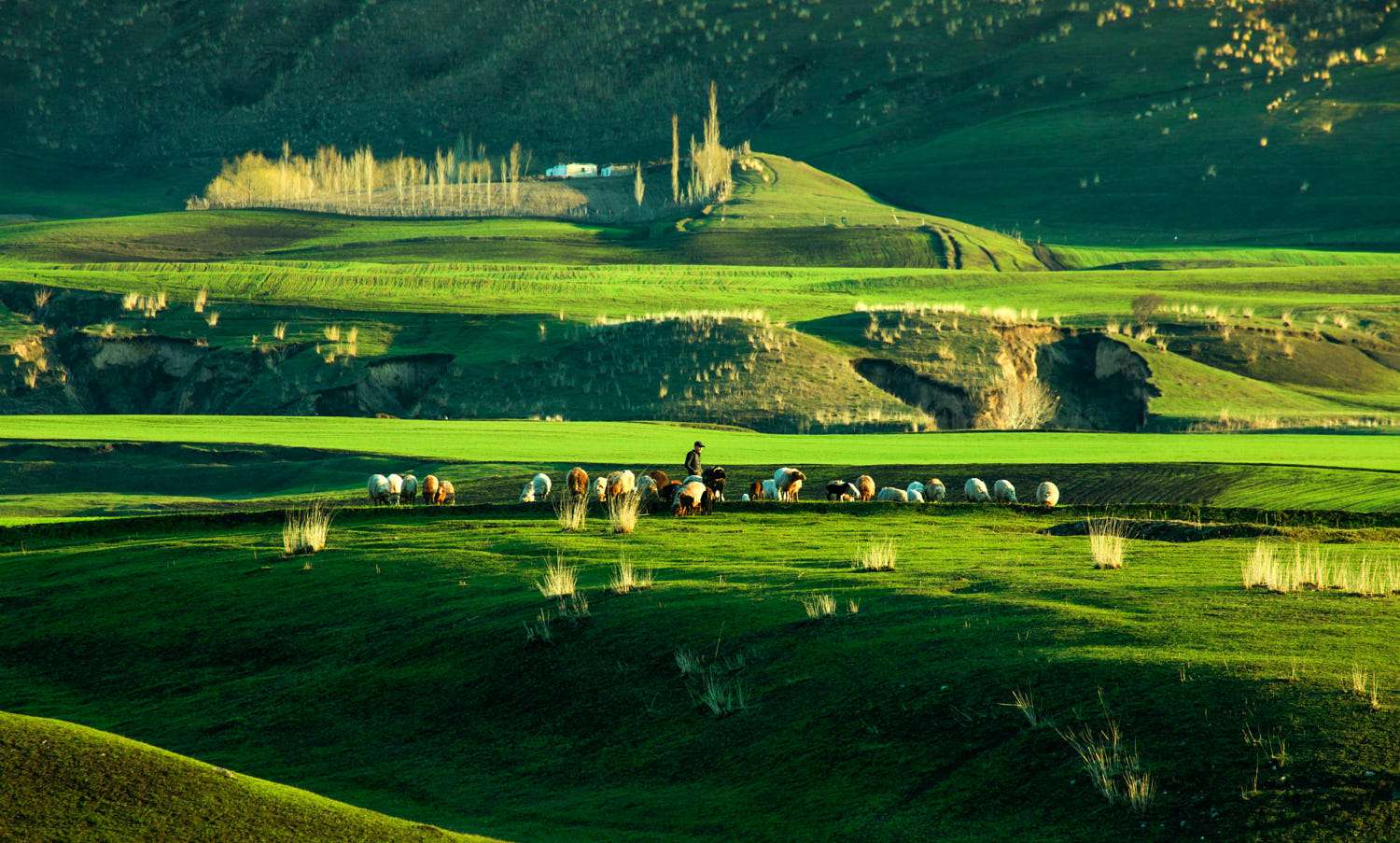 那拉提草原是發育在第3紀古洪積層上的中山地草場,東南接那拉提高嶺,勢如屏障,西北沿鞏乃斯河上游谷地斷落,地勢大面積傾斜,山泉密布,溪流縱橫。版權所有山東聊城聊之旅國際旅行社有限公司,轉載必究!緣山腳沖溝深切,河道交錯,森林茂密,莽原展緩起伏,松塔沿溝擎柱,還有氈房點點,畜群云移,是鞏乃斯草原的重要夏牧場。