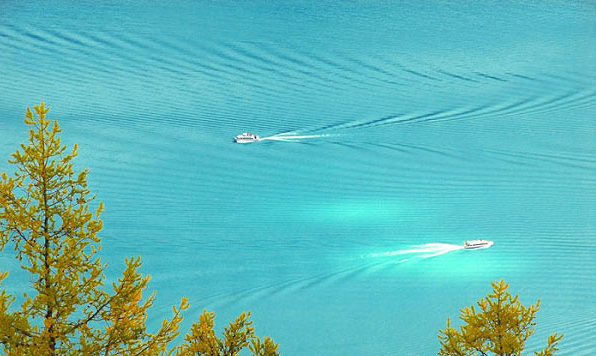 喀納斯湖另一奇觀是變色,被稱之為“變色湖”。春夏時(shí)節(jié),湖水會(huì)隨著季節(jié)和天氣的變化而變換顏色。從每年的4、5月間開(kāi)化到11月冰雪封湖,湖水在不同的季節(jié)呈現(xiàn)出不同的色彩。5月的湖水,冰雪消融,湖水幽暗,呈青灰色;到了6月,湖水隨周山的植物泛綠,呈淺綠或碧藍(lán)色;7月以后為洪水期,上游白湖的白色湖水大量補(bǔ)給,由碧綠色變成微帶藍(lán)綠的乳白色;到了8月湖水受降雨的影響,呈現(xiàn)出墨綠色;進(jìn)入9、10月,湖水的補(bǔ)給明顯減少,周圍的植物色彩斑斕,一池翡翠色的湖水光彩奪目。