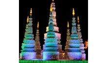 傣族水井的建筑頗具匠心,井身造型和裝飾,都采用傣族崇敬的大象、孔雀、塔等作造型。井身鑲了許多小圓鏡,莊重華貴,這是因?yàn)榇鲎逑菜⒕此⒂盟硎緪矍椤⒈磉_(dá)祝福,凡是傣族村寨都有各種形狀的水井塔,曼金堡水井塔,就是典型的寶塔形水井。