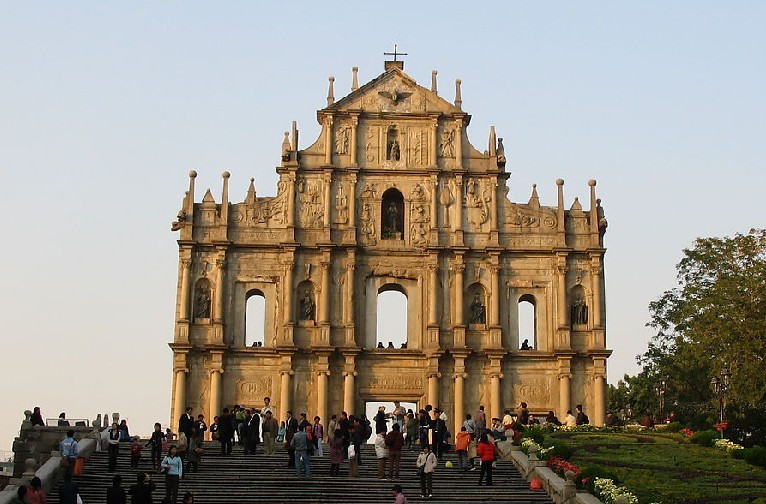大三巴牌坊(Ruins of St.Paul),是澳門最具代表性的名勝古跡,為1580年竣工的圣保祿大教堂的前壁,此教堂糅合了歐洲文藝復興時期與東方建筑的風格而成,體現出東西藝術的交融。雕刻精細,巍峨壯觀。