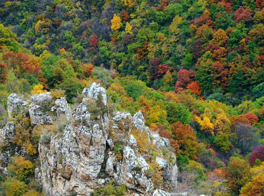 峽谷中,谷寬澗淺,如在盛夏時(shí)節(jié),陽(yáng)光普照,滿(mǎn)山滴翠,空氣清新,鳥(niǎo)語(yǔ)花香。再往前行,只見(jiàn)峰巒閉鎖,兩壁怪石交錯(cuò),明媚的陽(yáng)光已不復(fù)存在,冷風(fēng)習(xí)習(xí)、陰森逼人,只有一線(xiàn)天,亂云飛渡。順山路而進(jìn),時(shí)而陡壁迎面,山窮水盡;時(shí)而峰回路轉(zhuǎn),柳暗花明,別有洞天。當(dāng)?shù)匕傩罩v,四十里飛狐七十二道彎,彎彎有洞天美景,處處含勝景奇觀。峽谷一路前行,有“一炷香”、“雙箭孔”、“三仙思月”、“四將守門(mén)”、“五狗望月”、“六郎樁”、“七女峰”、“八仙洞”等奇峰異石,每一處奇觀都會(huì)給人留下無(wú)限遐想。四十里飛狐四十里景,迷宮奇物天作成。它以山峰怪異稱(chēng)奇,以深幽兇險(xiǎn)稱(chēng)奇,自古多少兵家因此處山兇地險(xiǎn)而爭(zhēng)戰(zhàn)駐守,多少文人墨客對(duì)奇景嘆妙稱(chēng)奇留下詩(shī)篇。這里公路通達(dá),車(chē)行順暢,更成為旅游觀光、尋覓歷史遺跡的絕好去處。