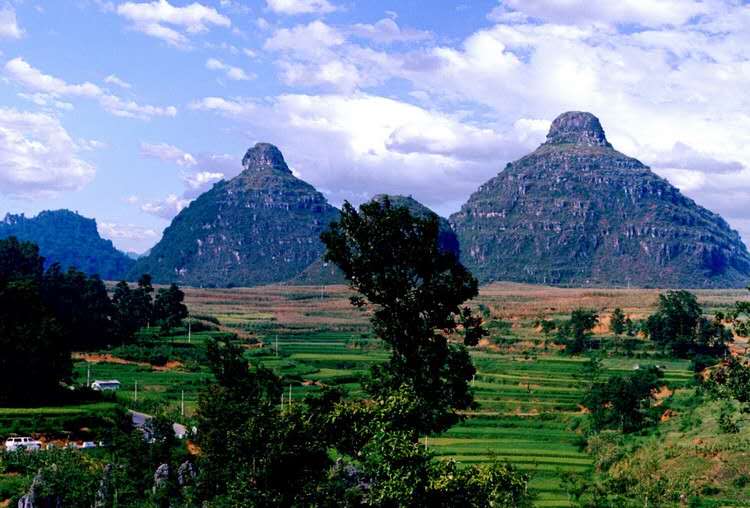 天下奇觀“雙乳峰”位于貴州省貞豐市區境內,離縣城9公里,處于貞豐——貴陽的公路干線上。占地40公頃 海拔1265.8米,相對高度261.8 多米。兩座兀立的石峰形同女性豐滿的雙乳,且逼真得讓女人看了臉紅,男人看了心跳,被當地布依族稱為“圣母峰”,被世人譽為“天下第一奇峰”雙乳峰。