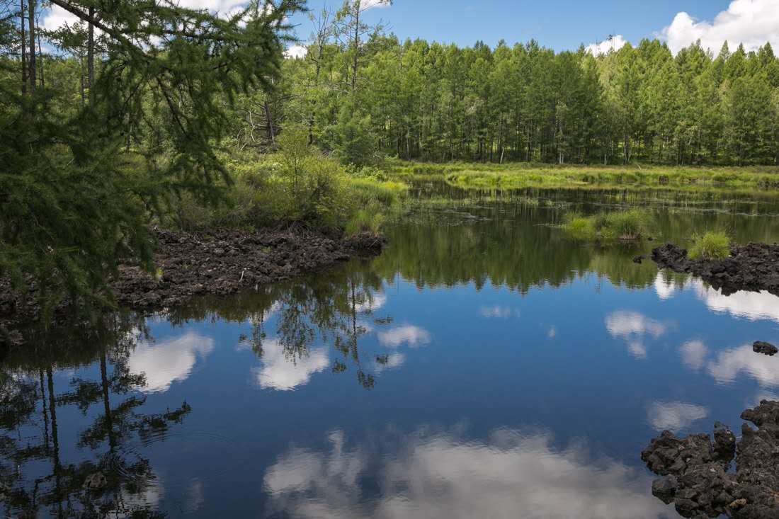 走進石塘林,就如走進天然、完整的火山巖地質博物館,這里分布著歷史上多次火山噴發形成的地質遺跡,火山噴發的巖漿覆蓋地面形成廣闊的熔巖席、熔巖被等,高出地面的熔巖常常形成臺地。阿爾山境內廣闊的熔巖臺地,其面積達1000平方公里,其中最為壯觀的是大黑溝一帶形成了長20公里,