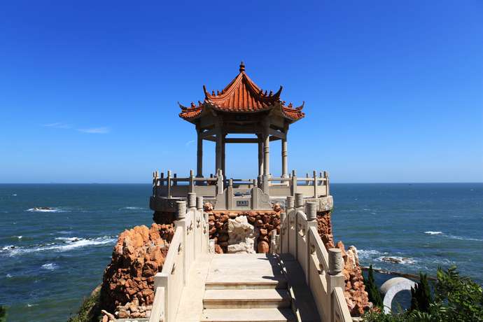 仙境源東面開口處臨海而立,頓感開闊,村人在此建一亭閣,高約16米,順懸崖之勢造陡峭臺階,左拐延