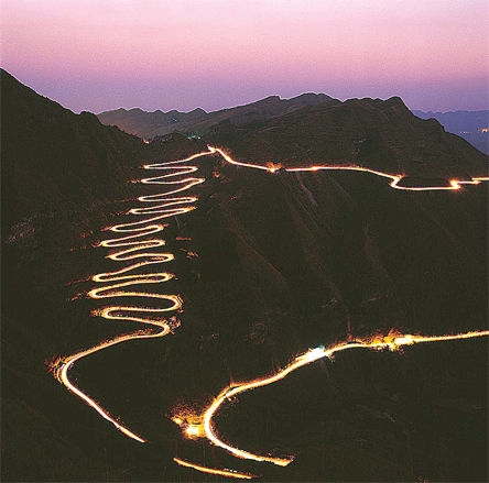 “24道拐”抗戰公路,是“史迪威公路”的形象標識。從山腳至山頂的直線距離約350米,垂直高度約260米;在傾角約60度的斜坡上以“S”型順山勢而建,蜿蜒盤旋至關口,全程約4公里。