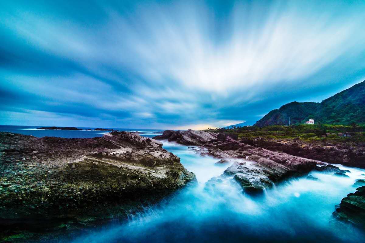 石梯坪游憩區(qū)是一處綿延一公里、布滿灰白色奇巖怪石的海濱,原為火山噴發(fā)后所形成的一片凝灰?guī)r(火山碎屑巖)質(zhì)的地層,這一帶海岸由于巖層間軟硬的差異,經(jīng)長年海蝕后,硬的外凸,軟的內(nèi)凹,巖石又以一定傾角向東南方的海中傾斜,所以形成了石梯狀的形態(tài)。