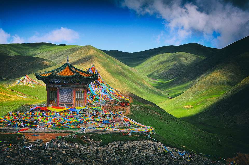 今天的日山和月山上各修建了兩座亭子,分別叫日亭和月亭,經幡飄舞的亭子里面用碑文和壁畫記錄了公主入藏時的種種情景。山上是無數藏人用虔誠和信仰堆起的瑪尼堆,石堆上插滿了盤樹虬枝。版權所有山東聊城聊之旅國際旅行社有限公司,轉載必究!山下是文成公主廟,矗立著巍峨的文成公主漢白玉雕像。藏歌悠悠,牛羊如云,無數經幡和高昂的藏歌迎著日光漠風飄揚,表達出一代又一代人們對那美麗靈魂的深深崇敬。