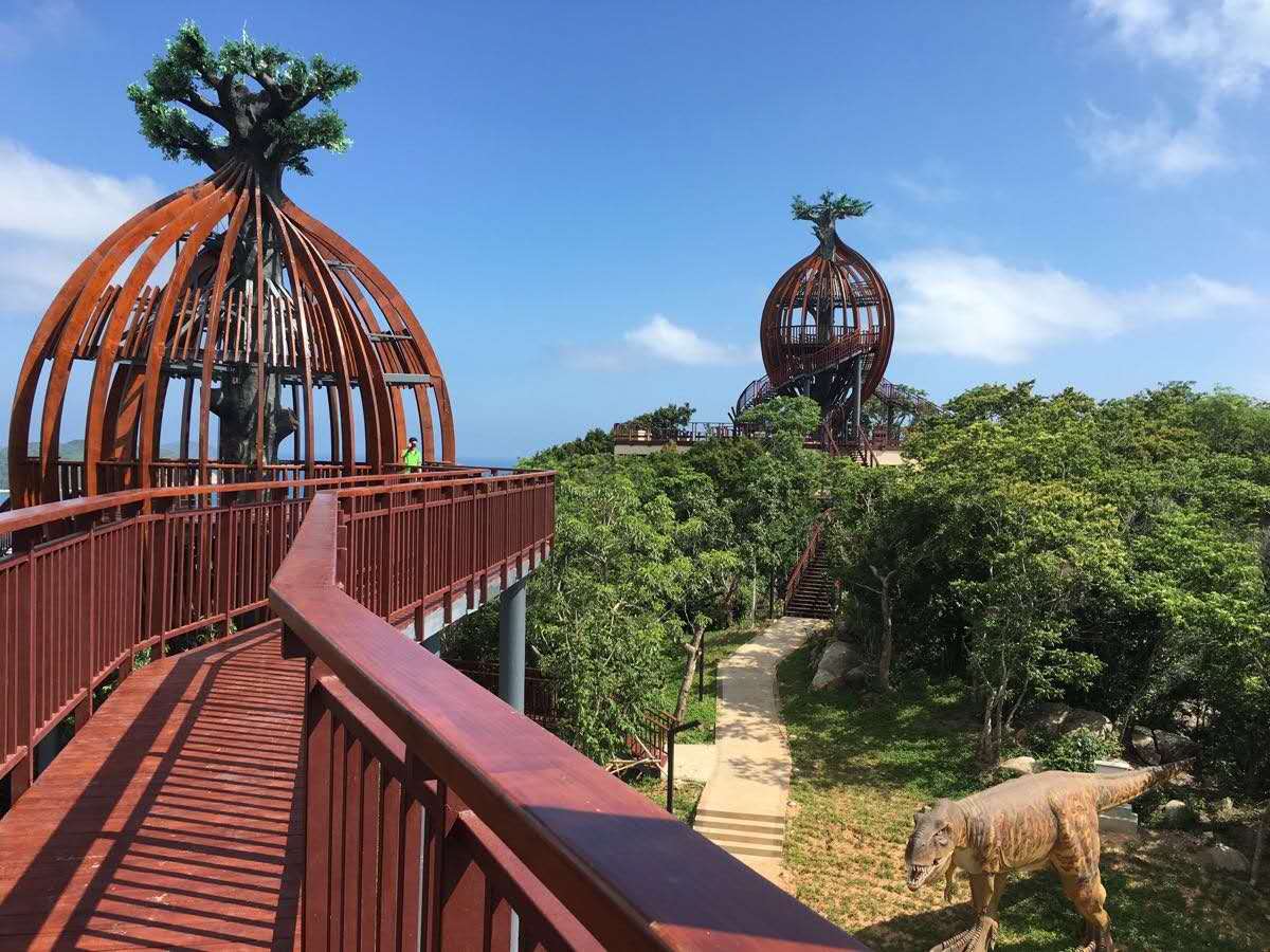 從景區(qū)主入口進入,依次參觀亞龍灣印象區(qū):中心圖騰廣場、冰世界熱帶零度樂園、絲路貝殼館、絲路驛站海底餐廳、“蒙太奇炫影”潛水;濱海樂園區(qū):水上樂園、“天下第一灣”、濱海浴場、亞龍灣愛立方海上婚紗基地;山海相望區(qū):光陰流轉(zhuǎn)隧道、仁智橋、百歲階;觀海休閑區(qū):時運廣場、不老松;山頂叢林區(qū):“愛之巔”樹梢行走、碟繭樹屋、叢林仙境;蝴蝶谷生態(tài)區(qū):開心樂園、蝴蝶谷生態(tài)園、蝴蝶谷博物館、雨林溪徑,然后按原路返回。