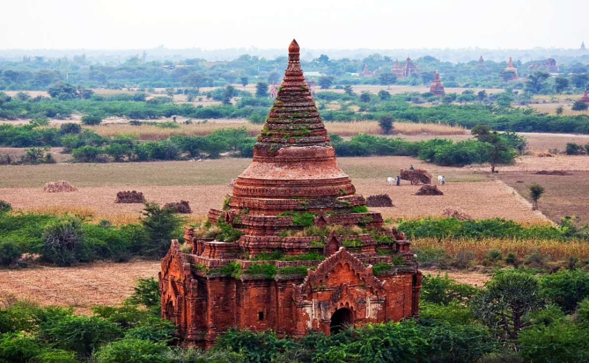 蒲甘地區(qū)面積約四十二平方公里,可分為舊蒲甘、新蒲甘和娘烏三部分,舊蒲甘是中心,是佛教遺址所在地,蒲甘地區(qū)的大部分精華就集中在這里;從舊蒲甘往南3公里為新蒲甘,集中了居民居住點(diǎn)和商業(yè)點(diǎn),是一個(gè)整齊的新城鎮(zhèn);而從舊蒲甘往東北行約4公里便到了另一個(gè)小鎮(zhèn)娘烏。三個(gè)部分之外是大片的荒野。