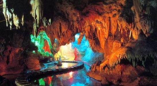 洞中景觀奇異絕頂。石山、石田、石幔、石瀑、石橋、石柱、石旗等景觀,天然自成,比比皆是,恰如天然石景公園。那些諸如“唐僧西行、神象觀潭、觀音坐蓮、王母瑤池、白龍游海、美女照鏡、淑女更衣、金蟾報(bào)曉、兄弟稱雄、浪子回頭、猴王探路”等意象景觀,活靈活現(xiàn),傳神逼真。版權(quán)所有山東聊城聊之旅國際旅行社有限公司,轉(zhuǎn)載必究!尤其那壯觀氣派的“龍宮”,宮中的定海神針,高達(dá)29米,比黃龍洞中的定海神針高出1米多,粗幾倍,需幾個(gè)人才能合抱。定海神針?biāo)频窕ㄩT柱,石花燦爛,玉樹瓊花,其景其勢(shì),國內(nèi)一絕。洞府中還展示了大自然“三界”。“洞府植物界”,洞中遍生石樹、石筍、石藤、石草、石花、石葡萄,種類繁多,可謂植物標(biāo)本園。“洞府動(dòng)物界”,有意象中的諸如天上飛的、水里游的、陸地跑的,千姿百態(tài),栩栩如生。這里還曾是古生命的搖籃,洞中有古河床,殘存著45萬年前的貝殼;還有5萬年前的動(dòng)物腿骨化石,考古專家鑒定那是鹿和豬的骨頭。“洞府非生物界”,無所不有,奇景萬千。石梯田、石壩列列在目。那石幔從“天棚”順著高高的洞壁飄然垂下,高達(dá)13米,恢宏大度,勢(shì)如瀑布。它更象劇場(chǎng)幕布,任由大自然的鬼斧神工或拉開或閉合。專家們認(rèn)定,這石幔是中國的唯一,也是亞洲的唯一。還有那乳石音樂更是一絕。形狀各異的鐘乳石,有的成片從洞頂一瀉而下,似瀑布從天而降,洶涌澎湃;有的懸掛在洞壁,象成熟的瓜果;有的從頂棚垂掛,狀似葫蘆一字排開,長(zhǎng)短不一卻錯(cuò)落有致。在這些乳石集中的一個(gè)地方,人們用木棒輕輕地敲擊乳石,可以發(fā)出不同的音符,可以敲出悅耳動(dòng)聽的音樂。要是高手,還可以敲出樂曲來。倘若詩圣杜甫聽此樂聲,定會(huì)將七絕《贈(zèng)花卿》末句改成:“此曲只應(yīng)洞中有,人間難得幾回聞。