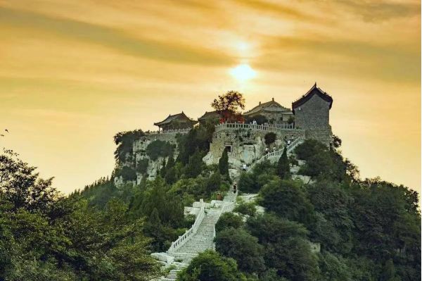 云門山風(fēng)景區(qū)山腰處是“望壽閣”,原為元朝時期的“靈官廟”,后毀于戰(zhàn)火,1984年重修。因這里與山頂?shù)摹皦邸弊诌b遙相望,于是更名為“望壽閣”。閣內(nèi)的正殿建于懸崖之上,高大宏偉,古樸壯觀,正門匾額上書“望壽閣”三個大字,為著名書法家啟功題寫。殿內(nèi)供奉福、祿、壽三星,東西兩邊的廂房里供奉關(guān)公和財神,許多游客喜歡在此進香拜神,希冀自己和家人一生平安,萬事如意。