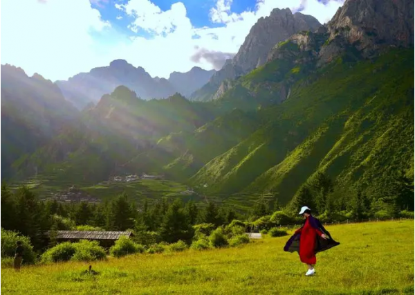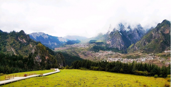 在群山環繞之中,有一處大片的草坪,平整的木棧道,那就是仙女灘,在這里可以一覽無余的飽覽整個扎尕那山峰的全景。