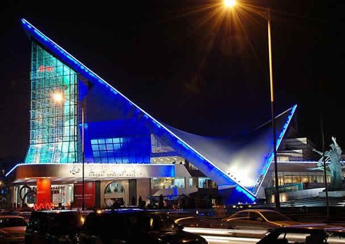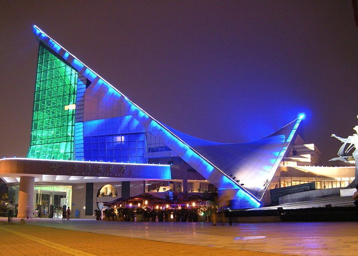 星海音樂廳位于廣州二沙島,造型奇特的外觀,富于現代感,尤如江邊欲飛的一只天鵝,與藍天碧水渾然一體,形成一道瑰麗的風景線。這座以人民音樂家冼星海的名字命名的音樂廳,占地1.4萬平方米,建筑面積1. 8萬平方米,設有1500座位的交響樂演奏大廳、460座位的室內樂演奏廳,100 座位的視聽欣賞室,和4800平方米的音樂文化廣場。整體建筑為雙曲拋物面鋼筋混凝土殼體,室內不吊天花板,做到建筑空間與聲學空間融為一體。星海音樂廳總投資達2.5億元,是我國目前規模最大,設備最先進,功能完備,具有國際水平的音樂廳。