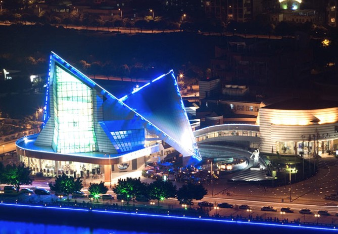 星海音樂廳位于廣州二沙島,造型奇特的外觀,富于現代感,尤如江邊欲飛的一只天鵝,與藍天碧水渾然一體,形成一道瑰麗的風景線。這座以人民音樂家冼星海的名字命名的音樂廳,占地1.4萬平方米,建筑面積1. 8萬平方米,設有1500座位的交響樂演奏大廳、460座位的室內樂演奏廳,100 座位的視聽欣賞室,和4800平方米的音樂文化廣場。