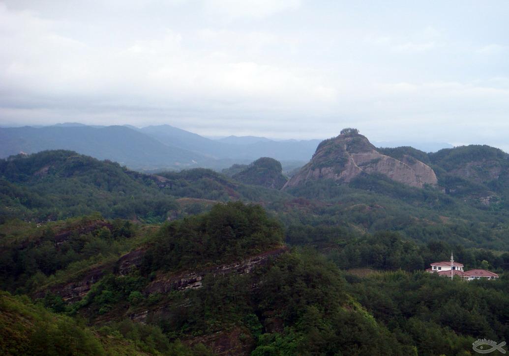 鯉魚背,是一條貼著山崖的崎嶇小石道。聽說,有三百六十五個臺階,象征著一年三百六十五個晝夜,順利登上山去就意味著一年平平安安、萬事如意。拾級而上,身歷其險,自是心無旁鶩。偶而扶欄回眸遠眺,蓮花峰、秀女峰、駱駝峰,峰峰入眼,雄渾壯麗,形態逼真。若逢山霧繚繞時,霧中石道就形似鯉魚追風逐浪。過鯉魚背,攀到山頂,長壽亭高踞山巔。歷盡短暫“艱辛”,終抵山頂,頓覺快意無比,是一種釋然的解脫和撫慰。遇碧空如洗艷陽天,憑欄遠眺,城鎮、田野、山巒,盡收眼底,“無限風光在險峰”。所有塵世雜念,一掃而去。離長壽亭,一路下山。“一線天”把冠豸山峰一劈為二,左為靈芝峰,右為五老峰,兩峰截然分離,間距僅二、三米。來到鐫刻“上游第一觀”五字的巖壁前,俯視山下城區,九曲文川,繚繞如練;村舍錯落,樓宇林立,田疇如畫。