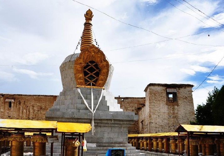 阿巴扎倉(cāng)二樓為僧房和無量光佛殿(溫巴埋拉康),殿中供有無量光佛合金像、貢若堅(jiān)村桑布包銀靈塔、杰尊曲結(jié)堅(jiān)村包銀靈塔,還有一座拉藏汗(?~1717年。清代蒙古和碩特部貴族首領(lǐng))出資修建的善逝塔。三樓主要作為達(dá)賴的臥室。
