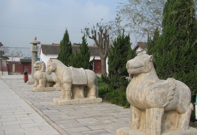 曹植(公元192~232年)字子建,“建安七子”之一,他所作的《七步詩》至今仍為世人廣為傳誦。曹植墓始建于魏太和七年(公元233年),1981年和1985年曾先后進行過修葺。墓冢依山而建,以磚石磊筑而成,占地面積約1200余畝。墓室為前堂后室的磚室墓,前堂面積約17平方米,后室面積約4平方米。墓壁均以青磚錯縫平砌而成。前堂后室之間辟有門,并以磚封護。墓內發現有石圭、石璧、青玉璜、瑪瑙泡、云母片以及陶器等隨葬品共132件。