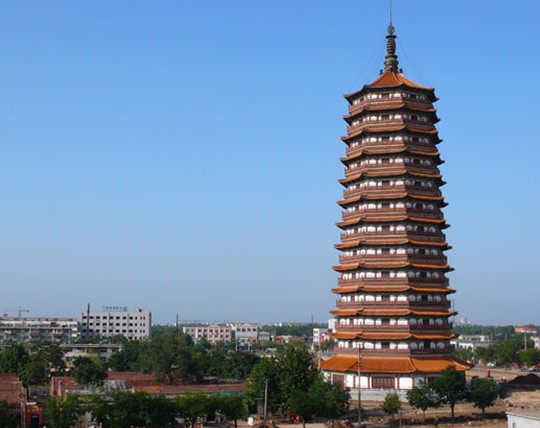 莘縣燕塔坐落于莘縣城中心,是一座存放高僧骨灰的佛塔,舊縣志中稱“古塔”、“寶塔”,外地人則稱“莘縣塔”。莘縣人因塔上棲息一種體型較大的鐵皮燕子而親切地稱為“燕塔”。 莘縣燕塔的歷史可追溯到北宋治平元年(即公元1064年),那一年舉行了隆重的古塔奠基儀式。金天眷二年(即公元1139年),塔終于宣告竣工,一個塔前后竟建了75年。古塔共十三級,為樓閣式青磚木柱結(jié)構(gòu),塔體八面,每層四門,通高66.7米,塔基南北徑長22米,東西徑長23米,占地面積371平方米。古塔在莘縣城中心矗立了829年,歷經(jīng)王朝更替,社會變遷,戰(zhàn)事侵襲,巋然不動。