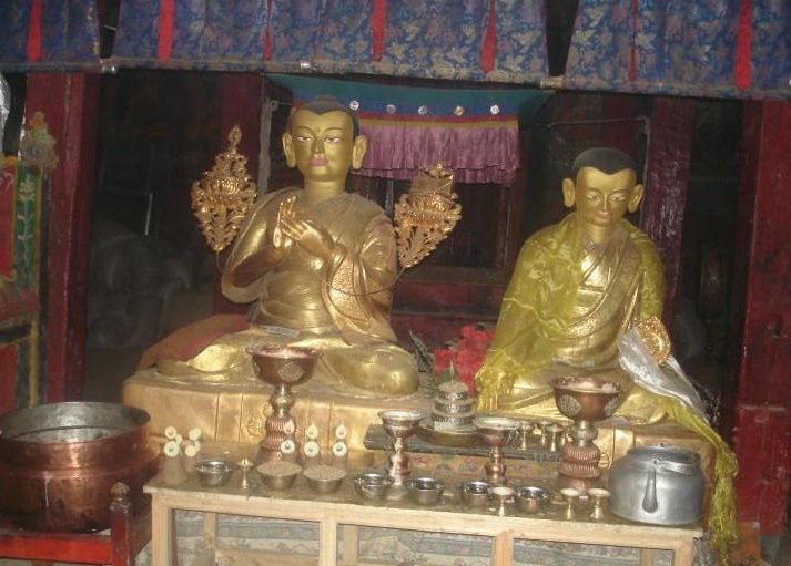 科熟王信仰佛教,用七大包銀子請尼泊和克什米爾工匠於中尼邊境協噶爾(今定日縣所在地)制作了一尊世間罕見的文殊菩薩像。用車運回王宮途中,在杰瑪塘被有著神奇傳說的圣石阿莫穆噶所阻,相傳菩薩像開口說「科加、科加」(意為依附或扎根於此),故科熟王遂命圍繞圣石建筑了造型奇特的殿堂,將文殊像供於殿內圣石之上,是為科加寺的最早建筑。拉德王時,用大量珍貴珠寶和白銀,為此像制作有三十朵蓮花的寶座,并為該寺修建大經學友,舉行了大規模的開光慶典。貢德王碼中文卡執政時助該寺制作銀質的金剛持和觀世音像;供於蓮花寶座的兩端,形成科加寺有名的「三至尊」。因該寺位於孔雀河岸邊,為防止洪水危害,扎西德贊執政時,動員信眾修建了防洪堤壩,開古格王朝筑提之先河。後來歷世古格王及其後裔陸續添帛佛像、經籍、供器,維修或建殿堂,使該寺文物豐富,除憶提出及者外,還有古格王朝時期的金質度母像、響銅釋迦像、《甘珠爾》、《丹珠爾》大藏經、整套《薩迦五祖遺高訓》等,據說還有極為珍貴的「前宏期」翻譯的《甘珠爾》經。