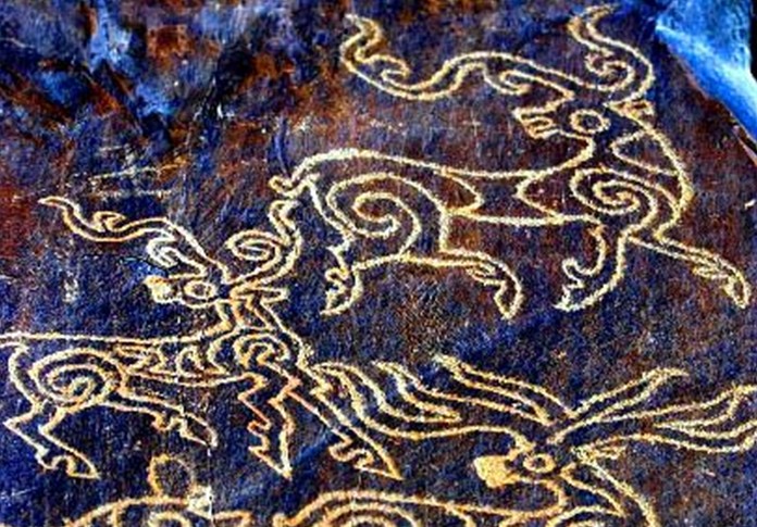 巖畫的內容較豐富,主要以狩獵、放牧、征戰、動物、器物、自然物等為內容。動物的種類包括虎、鹿、羊、野豬、狗、水鳥、老鷹等;人物有獵人、武士、牧人以及人獸一體的神靈形象;武器主要有弓箭、弩、長茅、刀、箭等;自然物包括太陽、月亮及植物等。上述的巖畫大部分為早期金屬時代的巖畫作品,通過這些作品真實的反映了班公湖地區古代游牧民族的生產和生活的生動場面,他們生活在大自然中,在改造大自然的同時,苦苦求索利用大自然,創造自己的美好生活。雖然巖畫的線條粗糙,造型顯得呆板,但質實古樸,頗能引起游客思古之幽情.