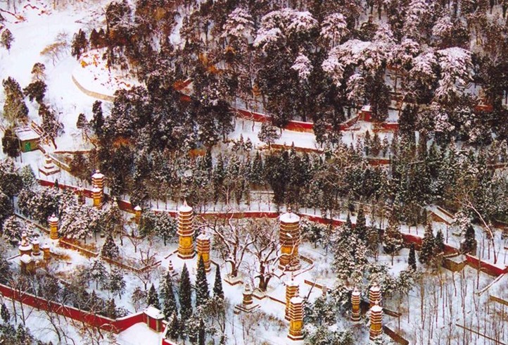 "天然一架錦屏開,不費(fèi)人間智巧排。"冬季的潭柘山景色別具一格。瑞雪初霽,層巒重嶺,茫茫一片,"紅裝素裹,分外妖嬈。"尤其是南面的錦屏山更是秀美,抬頭望去,恰如一幅錦繡玉雕的美麗圖畫。起伏的山巒宛如玉龍盤繞,又像蠟雕銀鑄。皚皚的白雪好似滿山梨花,又像海上銀波,若身處此情此景之中,你一定會由內(nèi)心里呼喊出來,"好一派北國風(fēng)光!"