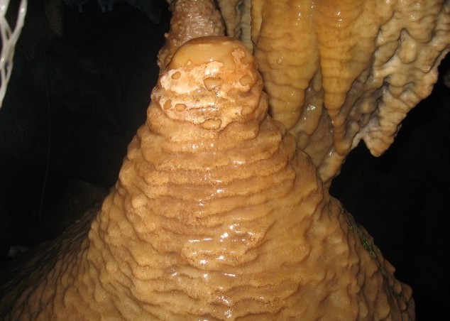 人間洞廳長70米,寬35米,高18米,主要景觀有網狀卷曲石、霸王鞭、擎天柱、懸空寺、金蟬戲金魚等。洞內石筍、石塔、石鐘乳、石柱遍布,最大的石柱高8.5米,胸圍4.3米,被稱為擎天柱。由于洞頂落下的水滴多次飛濺、鈣化沉積而形成的石花比比皆是。“網狀卷曲石”更是崆山白云洞的一絕,在我國其他溶洞中極為罕見。