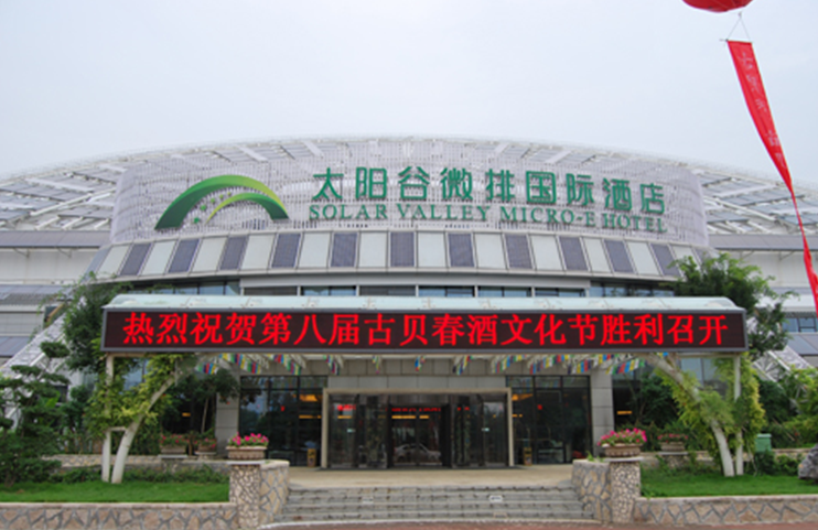 中國太陽谷是2010年世界太陽城大會的舉辦地,大會主會場——日月潭微排國際酒店(簡稱日月壇)是中國太陽谷標志性建筑,由皇明集團投資興建,是目前世界上最大的太陽能建筑,總建筑面積約7.5萬平方米。 2008年9月1日,皇明太陽能集團總部搬遷至日月壇。