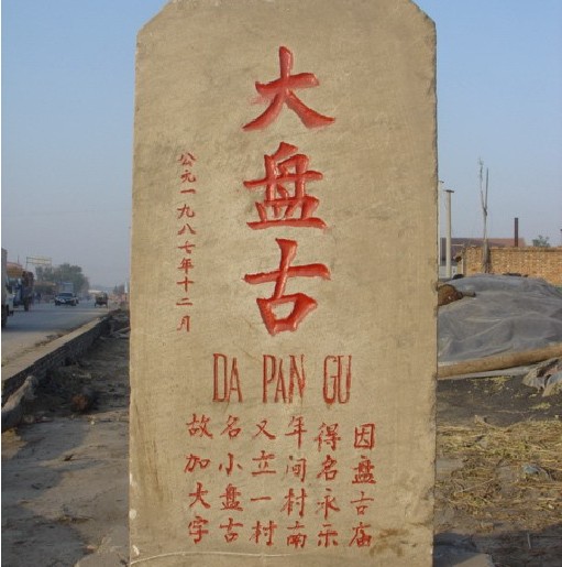 地處河北省滄州市北的青縣城南6公里有村曰“大盤古”,村西有座盤古廟。盤古廟始建于元世祖至元十五年(1278年),明弘治和崇禎年間曾重修,清康熙二十七年(1688年)因河流沖刷,設于秋祠西南重建,均有碑記。據文獻記載和民間傳說,當年的盤古廟狀似北京的故宮三殿,石、磚、木結構,琉璃瓦蓋頂,金碧輝煌,蔚為壯觀。