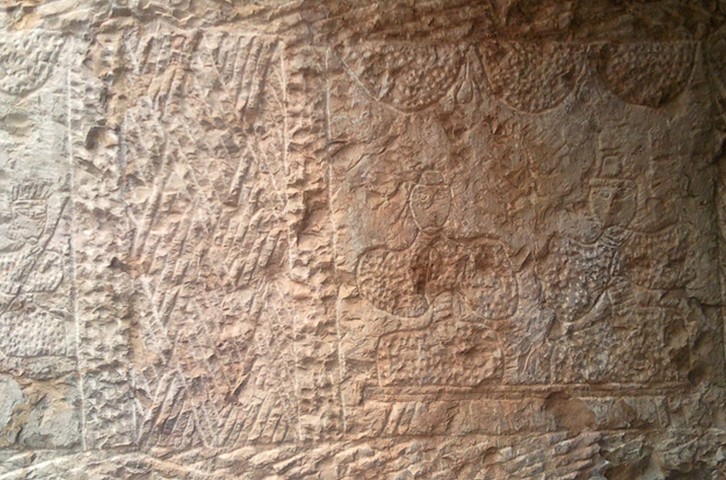 古戲樓的修建,還有一段“樓壓龍”的傳說。相傳朝廷欽差站在洪山口舉目觀望,古長(zhǎng)城上空煙霧繚繞,恰似一條巨龍游動(dòng),且看不清城中景色。朝廷疑此城要出真龍?zhí)熳樱瑸榱藟鹤〈她垼诤樯娇谛蘖巳鶚牵涤髂仙绞驱堫^,北山是龍尾,城中心修座戲樓代替金鑾殿,戲中出現(xiàn)皇帝,既不會(huì)危及朝廷江山,又可為皇上歌功頌德,可謂用心良苦。