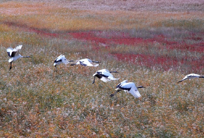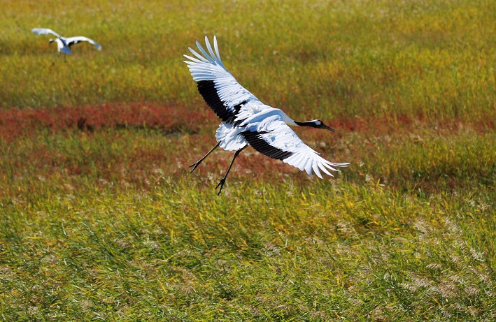 絕:除了鼎鼎大名的丹頂鶴,全世界15種鶴類中,向海就有6種,是遠(yuǎn)近聞名的“鶴鄉(xiāng)”;各種珍稀鳥類共173種,《瀕危野生動植物種國際貿(mào)易公約》中的鳥類向海有49種。另外,這里各種獸類、魚類、野生植物種類繁多,是亟需保護(hù)的珍貴的天然博物館。