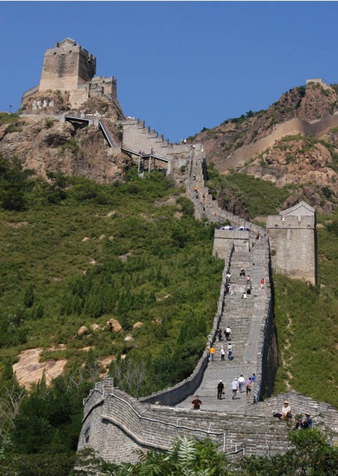 角山山勢巍峨,綿延起伏,是山海關的天然屏障。前山可俯視關城,眺望大海,后山可賞層巒疊嶂,觀“北國桂林”燕塞湖,山色湖光,山水相依,令人心曠神怡。登上角山敵臺,近鄰斷崖峭壁,遠望群峰起伏,大海如在腳下,長城倒掛山間,有詩曰“自古盡道長城險,天險要隘在角山,長城倒掛高峰上,俯視關城在眼前”。觀之令人情趣勃發,思緒萬千,充分領略到“不到長城非好漢”的豪邁氣魄。角山不但是形勢要地,而且名勝很多。坐落在山腰的棲賢寺,始建于明初,是明清時期肖顯、詹榮等文人雅士讀書隱居之所。角山后峰名“圍春山”,肖顯從福建辭官歸田后,在這里建起草堂,名“圍春山莊”,他便在這里優游終生。角山風景秀麗,環境清幽,實為探幽訪古之佳境。