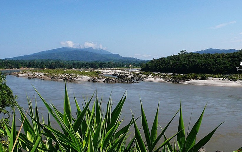 敏宋北距密支那43公里,又叫“三江口”,是恩梅開江和邁立開江的匯合處。敏宋是伊江的神來之筆,是克欽邦的精典景點(diǎn)。站在碩大的白體金塔前的草亭內(nèi),江風(fēng)習(xí)習(xí),俯瞰壯麗的三江口,頓覺胸襟開闊,思緒萬千。東邊那條叫恩梅開江,西邊這條就是邁立開江,兩江之間礁峭石奇,江水奔涌,在巨大的魚嘴石處交匯,合二為一,浩蕩南行,氣勢如虹。恩梅開江發(fā)源于西藏察隅縣境內(nèi),藏語叫“美爾東曲”;南下入云南怒江州貢山縣境后稱獨(dú)龍江;進(jìn)入克欽邦后更名為恩梅開江。邁立開江源自中緬邊境的大雪山南麓,其東邊是江心坡,西邊是枯門嶺。這兩條江的性格一陰一陽,一剛一柔,陰陽結(jié)合后,便成了緬甸的“天惠