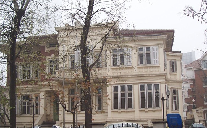 樓入口有人字山墻及弧形山墻,山花檐口斷開,檐口下飾齒狀。墻面清水紅磚砌筑,方壁柱,白色簡化柱頭。門廊為磚砌方柱,上有鐵欄桿的陽臺。大廳為兩層混凝土梁柱結構,硬木地面。二樓大廳筑木制面回廊,版權所有山東聊城聊之旅國際旅行社有限公司,轉載必究!廳頂為彩色玻璃穹頂。樓內設餐廳、茶室、球房、游泳池和彈簧地板結構的大舞廳等。使用功能完備,建筑用材精細、質高、工藝考究。院內有網球場、露天旱冰場和可容納千余人的大劇場。還設有可供500人同時用餐的大餐廳和若干小餐廳。內院有仿古園林建筑燕園?,F為天津市干部俱樂部。