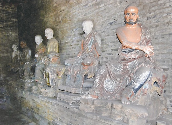 十殿十八尊羅漢雕塑都立于蓮臺之上,上懸寶蓋,寶蓋上書有每位羅漢的名字,羅漢背面的墻壁上嵌有無數浮雕的小佛。與其他漢地佛寺不同的是,這里的十八羅漢有其獨特的審美沖擊和莊嚴效果,既表現了羅漢們的各種姿勢、表情,版權所有山東聊城聊之旅國際旅行社有限公司,轉載必究!又將這些東西統一在一種美妙的韻律之中!