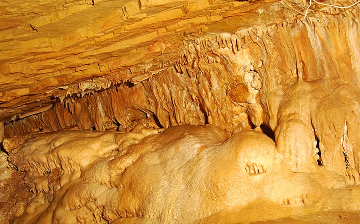 位于山東蒙陰縣城南部10公里處的桃墟鎮杏山村。此洞是杏山村民在1994年1月6日修建房屋采石時發現的。洞門是從溶洞中間炸開的,兩頭深不見底,有待于進一步開發建設。現已開發360多米,并已于1994年12月17日正式向游人開放。天然雕飾的杏山溶洞,洞內鐘乳石千姿百態,十分壯觀。