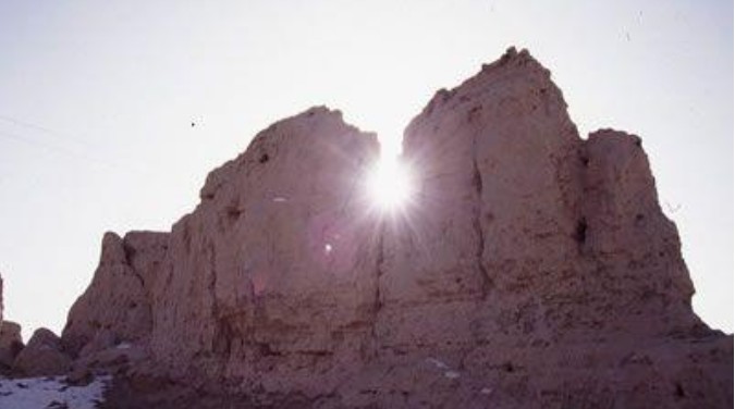 甲渠候官遺址俗稱破城子,位于額濟納旗南24公里,納林、伊肯河之間的戈壁灘上。為漢代居延都尉西部防線甲渠塞之長——甲渠候駐所。發掘前,遺址大部分為砂礫掩沒。往西300米,南北排列“一”字形烽燧和雙重塞墻遺跡。