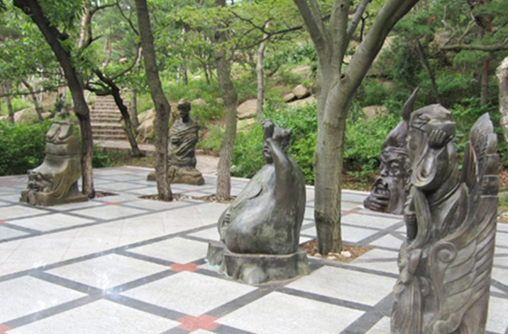 位于張保皋南面的赤山明神銅像,高33.8米,總投資4500萬(wàn)元,占地十二萬(wàn)平方米。由大明圣境、仙人棋盤、東峰觀景臺(tái)、明神銅像及其它附屬建筑組成。大明圣境牌坊題名由著名書法家劉炳森題寫。牌坊南墻的青銅浮雕“眾仙朝神”眾仙列班朝拜,聽候赤山明神號(hào)令的情景。“仙人棋盤”由“神閑氣定”、“運(yùn)籌帷幄”、“成竹在胸”、“觀戰(zhàn)之悅”、“駕鳳臨仙”、“悔恨難解”六個(gè)人物小品組成。版權(quán)所有山東聊城聊之旅國(guó)際旅行社有限公司,轉(zhuǎn)載必究!主要內(nèi)容是各路神仙會(huì)聚赤山對(duì)弈的場(chǎng)景。人間的棋局,竟然讓天上的神仙情不自禁,于是,喜怒哀樂(lè)溢于言表,性情體態(tài)栩栩如生。“赤山明神”銅像高58.8米,面朝浩瀚的黃海,雄壯威武。赤山明神亦稱赤山神,相傳明神本相出于赤山紅門洞。赤山明神威鎮(zhèn)四海,法力無(wú)邊,守護(hù)鄉(xiāng)土,福佑大千,功德無(wú)量,乃華夏北方庇佑之神。始皇并六國(guó),于贏政二十八年(公元前219年)東巡成山,以求長(zhǎng)生不老之藥。途大病,李斯遽祈明神,旋無(wú)恙。唐高宗顯慶五年(公元660年),唐政府幫助新羅人(今韓國(guó))打敗高麗和百濟(jì),統(tǒng)一朝鮮半島,自此唐和新羅非常友好,關(guān)系密切。很多新羅人來(lái)到唐朝學(xué)習(xí),做官,做生意,出苦力,當(dāng)兵,做船工,當(dāng)奴婢,有的長(zhǎng)期居住在中國(guó),主要分布在東南沿海和大運(yùn)河沿岸地區(qū),特別是和新羅僅一海相隔,相距不足200海里海上交通樞紐赤山浦(今石島灣),居住的新羅人就更多了。法華院宣講《法華經(jīng)》時(shí),“四方眾信及有緣施主都會(huì)聽,道俗老少尊卑都是新羅人。”(據(jù)《入唐求法巡禮行記》一書)為了對(duì)新羅人進(jìn)行管理,特設(shè)了“勾當(dāng)新羅所”。新羅人除去赤山法華院參拜佛祖,祈求保佑外,也去紅門參拜赤山神。尤其在赤山法華院建立之前和拆毀之后,主要參拜的是赤山神,赤山神也就不分國(guó)界施恩于新羅,因此新羅人就把他當(dāng)作自己的神。稱之為“新羅神”大韓民國(guó)文化部、海運(yùn)航海廳、全羅南道韓國(guó)文化藝術(shù)振興院編著的《張保皋》一書中說(shuō):“有關(guān)日本九州博多太守府的史書記載,圓仁弟子按照宗師遺囑建立的比睿山赤山禪院里繪制的‘新羅神’臨近寺剎(例:圍城寺和三井寺)里供奉的新羅國(guó)的‘大明神’等有關(guān)記載,都明確無(wú)誤地說(shuō)明了張保皋人把日本比睿山赤山禪院里供奉的‘赤山神’當(dāng)作自己的神——‘新羅神’了。該書還說(shuō):“在博多太守府內(nèi),常駐有許多從事貿(mào)易的新羅人,而在此之前,就定居在九州一帶的新羅人,也多從事貿(mào)易業(yè)。”張保皋對(duì)日本的影響,在其后日益明顯,如前所述的赤山禪院比睿山周圍的寺剎里,供奉的象征著保護(hù)財(cái)富,帶來(lái)運(yùn)氣,保護(hù)航海安全的“新羅神”(赤山神),說(shuō)明新羅人以及張保皋所組織國(guó)防貿(mào)易船隊(duì),是把“赤山神”當(dāng)作自己神了。唐文宗開成三年(公元838年),東瀛天臺(tái)宗三世座主圓仁(慈覺(jué)大師)隨遣唐使赴唐求法數(shù)載,曾三赴赤山拜謁。歸途中,于滄海屢遭劫難,幸明神顯靈,方化險(xiǎn)為夷,且保全經(jīng)典數(shù)百卷。圓仁歸國(guó),遂以赤山明神為天臺(tái)宗庇佑之神供奉,其后弟子秉承其旨意,于京都修一寺院,名之曰:“赤山禪院”。而后,赤山明神漸為東瀛等國(guó)所崇拜,乃至波斯、大食等區(qū)域。至今,日本、韓國(guó)等寺院仍多供奉赤山明神,以福佑天下,普渡蒼生。 據(jù)《后漢書》載,赤山明神是中國(guó)古代原北方系鮮卑族之保護(hù)神。版權(quán)所有山東聊城聊之旅國(guó)際旅行社有限公司,轉(zhuǎn)載必究!他不僅是中國(guó)民間的保護(hù)神,也是日本、韓國(guó),甚至波斯、大食(阿拉伯)等諸多國(guó)家民間的保護(hù)神。尤其是韓國(guó)、日本的許多禪院里如今仍供奉著赤山明神。