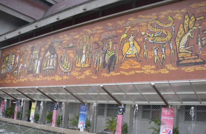 古典式馬來建筑的墻面上裝飾著兩幅巨大壁畫,長35.1米,高 6米,左側是表現馬來西亞各種手工藝品制造的全過程,右側是從12世紀起至1957年馬來西亞獨立的各個歷史時期的重要場面。