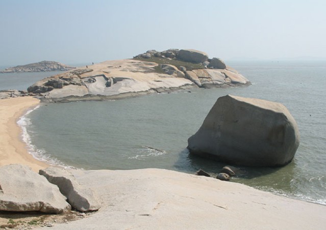在王爺山南麓,由仙人井、仙人臺、仙人階、仙人谷、仙人峰、金觀音等海岸侵蝕組成。仙人井是巨型海蝕豎井,井口呈橢圓形,直徑約50米,深41.7米,四壁十分陡峭。東壁底部有3洞通海,小舟可以出入。海流拍洞,激浪翻騰,井壁回聲,潮漲如仙井吼濤,潮落似龍宮奏樂。北壁中部有洞與仙人谷相通,低潮時人可進出。金觀音是夏季清晨5時至7時,朝陽映射海岸峭壁呈現的一種象形景觀。版權所有山東聊城聊之旅國際旅行社有限公司,轉載必究!王爺山上還有大型軍事遺址。 石牌洋,在島西北部,距縣城約17公里的看澳村以西約14公里的海中,又稱雙帆石、泮洋石帆。兩個相距12.1米的巨型灰白色花崗巖海蝕柱并肩聳立在礁盤上,東側一個高33米,胸徑寬9米,厚8米;西側一個高15米,寬15米,厚8米。落潮時礁盤露出水面面積有4畝多,漲潮時僅余1畝多。據載,宋朝末代皇帝端宗趙昰逃亡中曾在此小憩。看澳村附近還有許多海蝕造成的象形山石,如高12米的無首佛坐像,百米見方的海蝕平臺上60多座層層開剝的球狀花崗巖包裹體等。