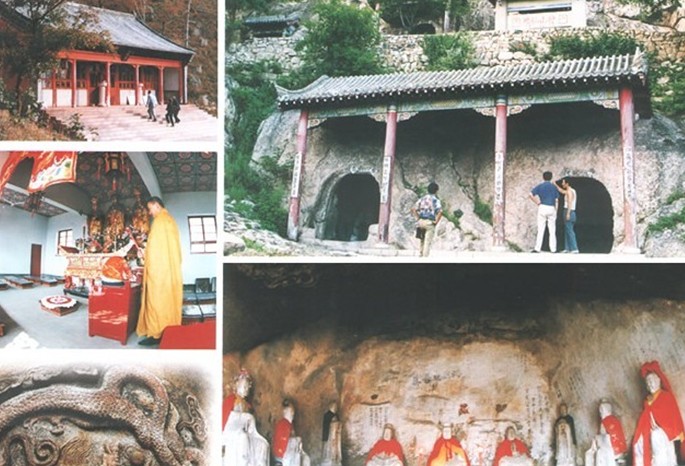 寒同山神仙洞屬于道家石窟,位于城區(qū)東南方向。洞窟由人工鑿成,為元代所鑿,共有6個石洞,洞內供奉道家諸仙石雕塑像36尊。洞分上下兩層,上層四洞較大,下層兩洞較小,36尊石雕塑像所用材料均為雪花白大理石,造形圓潤,神態(tài)肅穆端莊,為省級重點文物保護單位。全真教七真人之一劉長生曾在此山修煉,從元代至民國一直有王姓道士世代在山上居住修煉,解放后下山還俗,近幾年仍由原王姓道士在山上管理。