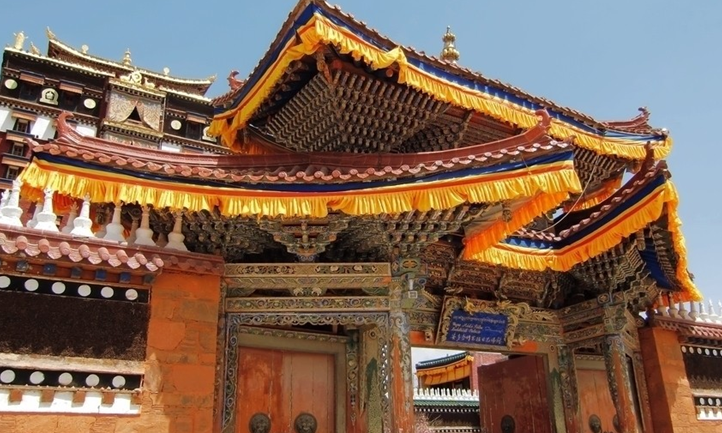 米拉日巴是藏傳佛教史上最富傳奇色彩的一位大師,是噶舉派(白教)創(chuàng)教者之一。他年幼喪父,家產(chǎn)被伯父霸占,隨母親過著貧困生活,飽受凌辱。為報(bào)仇雪恥,他修習(xí)了苯教咒術(shù),并咒殺了伯父及其親友30余人。快意恩仇之后,他頓生懺悔之心,于是改宗佛教,拜在瑪爾巴譯師門下。為了磨煉他的心性,瑪爾巴曾讓他在連續(xù)六年之內(nèi)修建眾多城堡,然后再一一拆毀。后來,米拉日巴又在崗仁波卿雪山上苦修了9年,版權(quán)所有山東聊城聊之旅國際旅行社有限公司,轉(zhuǎn)載必究!飲冰雪、食青苔,以至毛發(fā)膚色都變成了綠色,最終印證了“大手印”和“拙火定”密法。“拙火定”能夠大幅度提高身體溫度,因此即便是在冬季,他也只穿一襲布衣,人們稱之為“米拉日巴”,意為米拉家族中穿布衣者。米拉日巴終生未建道場,在青藏各地云游傳教。他傳教的方法獨(dú)特,常以歌唱教授門徒,對(duì)后世藏族詩歌發(fā)展產(chǎn)生過影響。版權(quán)所有山東聊城聊之旅國際旅行社有限公司,轉(zhuǎn)載必究!米拉日巴修煉過苯教和紅教的密法,參與開創(chuàng)了白教,而他對(duì)密宗的心得又被后來的黃教所沿襲,所以受到藏傳佛教各派的尊崇。閣內(nèi)主要供奉藏族民眾中最富傳奇色彩、婦孺皆知的米拉日巴佛。樓高共九層,供奉以米拉日巴佛尊都 及其弟子為主的藏傳佛教各派的開宗祖師,有以金剛為主的四密乘的眾多佛像、菩薩、護(hù)法神等各類佛像1720尊。反映藏傳佛教內(nèi)容的各類壁畫規(guī)模巨大,繪畫技法高超,具有很高的藝術(shù)價(jià)值。在中國藏區(qū)共有兩座米拉日巴佛閣,這座佛閣為安多載我藏傳佛教名剎之一,建筑氣勢雄宏,版權(quán)所有山東聊城聊之旅國際旅行社有限公司,轉(zhuǎn)載必究!金碧輝煌。常年有住寺喇嘛學(xué)習(xí)研修,供奉佛主,有獨(dú)特的文化氛圍。