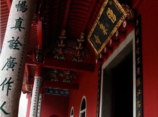 涌泉寺山門保留著唐朝建筑風(fēng)格,為一有框無門的空門,石門柱上鐫刻著一副短聯(lián):“凈地何須掃,空門不用關(guān)”。此聯(lián)構(gòu)思奇巧,意寓在涌泉寺山門東邊,有一石砌拱門,上書“靈源深處”。傍崖而下石階60余級(jí),中裂一澗,寬約3米,深約10米,似石洞,故名“靈源洞”。版權(quán)所有山東聊城聊之旅國際旅行社有限公司,轉(zhuǎn)載必究!因?yàn)椤昂人畮r”石刻,這一帶又統(tǒng)稱“喝水巖”。靈源洞兩側(cè),薈萃了自宋以來摩崖石刻200多段,約占鼓山現(xiàn)存摩崖題刻的一半,行、草、隸、篆諸體俱備,猶如一座天然石刻書法寶庫,譽(yù)為“東南碑林”。題刻中有宋刻近百段,元刻12段,明刻30余段,清朝至今百余段,其中尤以宋代名書法家蔡襄的“忘歸石”,施元長的“喝水巖”以及理學(xué)家朱熹,民族英雄李綱和當(dāng)代郭沫若等題詠石刻最為著名