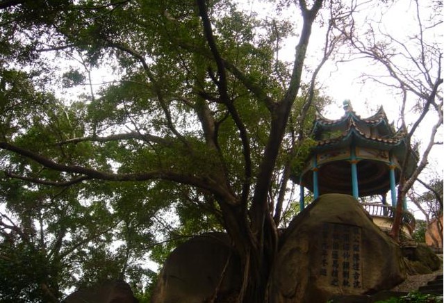 先薯亭下有一條小路,兩石夾峙于路兩邊,叫“天門”。先薯亭下天門中的一塊夾石極似鯨魚,稱“鯨魚石”.版權(quán)所有山東聊城聊之旅國際旅行社有限公司,轉(zhuǎn)載必究!過天門巖壁上有清代畫家廣陵禹隸書“飲嵐”。明朝初年在這里種植“長頸鹿榕”,如今盤石而生,根粗葉茂,酷似長頸鹿翹首南天。