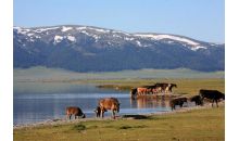 湖水系高山溶雪匯集而成,水深近百米,清純怡人。每到盛夏,湖周綠草如茵,繁花似錦,最為明艷。即使是盛夏天氣,湖水的溫度也相當(dāng)?shù)停擞瓮г诤嫔闲旭偅魂囮嚊鲲L(fēng)吹來,暑氣全消,是避暑的好地方。